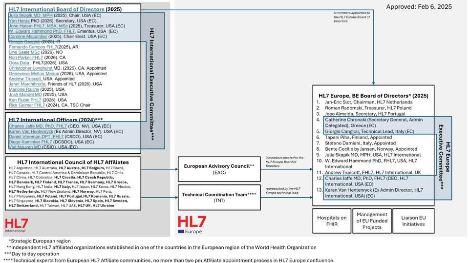 The four Board members marked by (*) form the HL7 Europe Executive Committee.